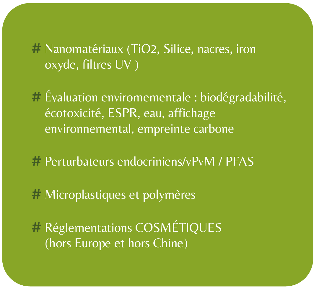 - Groupes de Travail réguliers : Participez à des groupes de travail thématiques d’experts INGRECOS sur des sujets majeurs concernant les ingrédients cosmétiques.