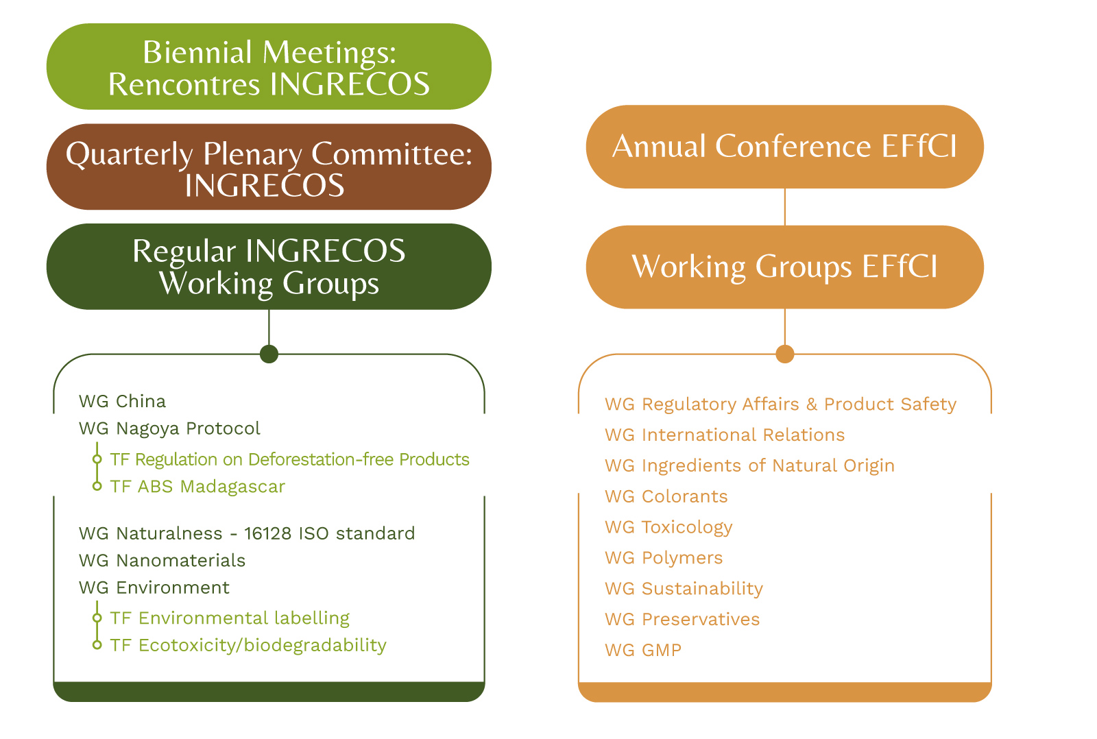 - Membership in EFfCI : By becoming a member of INGRECOS, you automatically join EFfCI, the European Federation for Cosmetic Ingredients. This grants you access to its Working Groups and Annual Conference.