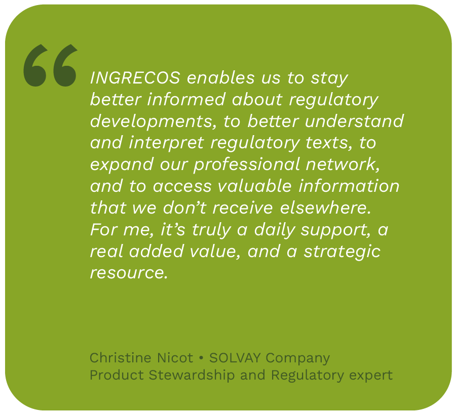 Representation and Dialogue: INGRECOS is a recognized stakeholder at both the national and European levels. We engage in dialogue with public authorities to advocate for your interests in the development of regulations, laws, and standards.