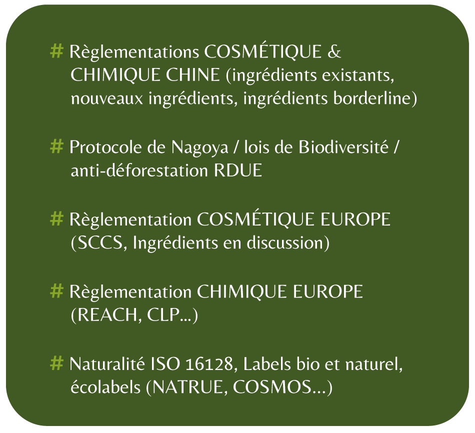 A la frontière des règlementations chimiques et cosmétiques, INGRECOS suit les évolutions réglementaires qui régissent les ingrédients cosmétiques. Nous fournissons des résumés clairs et des analyses détaillées pour vous aider à comprendre et à appliquer ces réglementations.